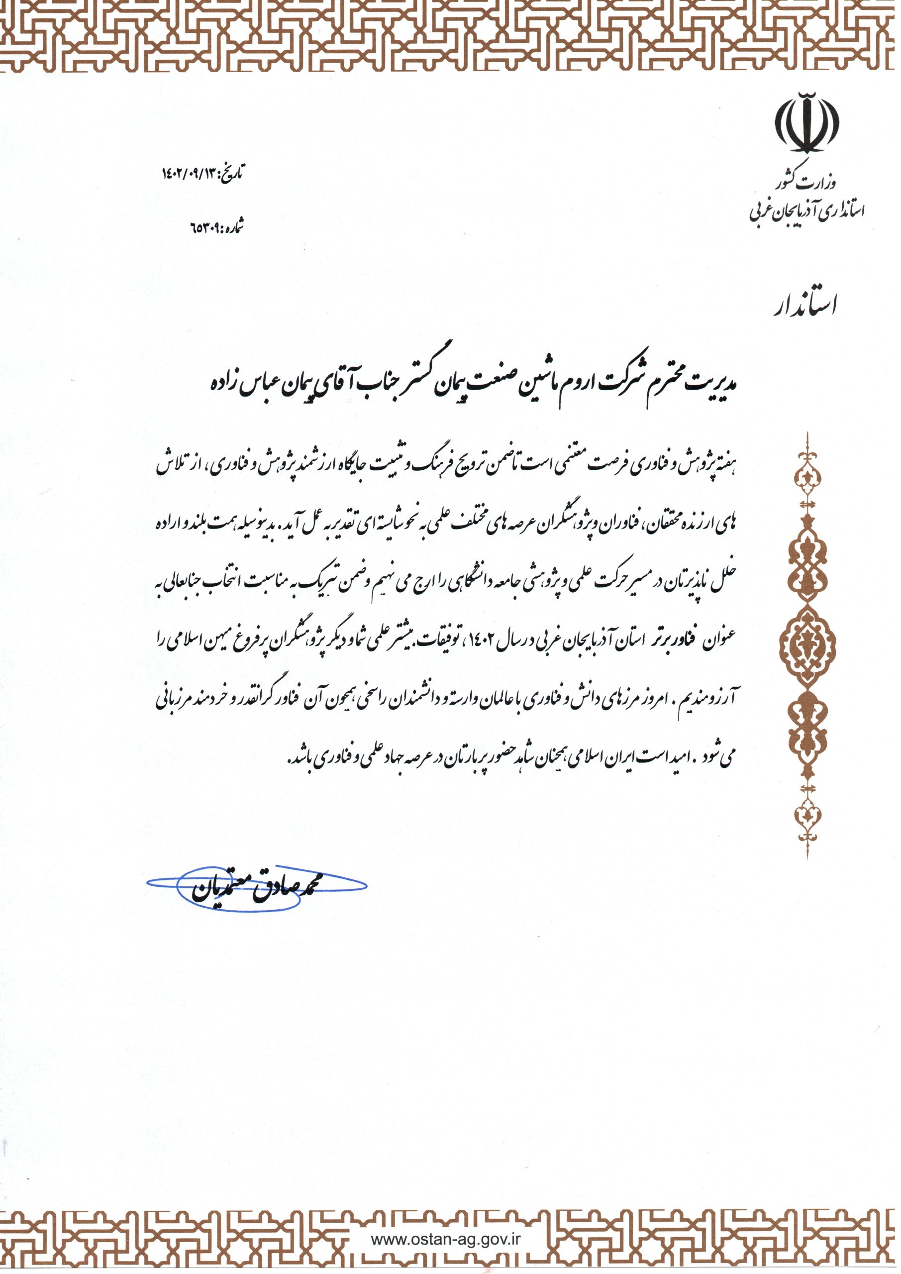 برگزیدگان پژوهش و فناوری جشنواره تجلیل از برگزیدگان پژوهش و فناوری آذربایجان غربی با حضور مدیرکل سیاستگذاری، برنامهریزی و توسعه فناوری وزارت علوم، تحقیقات و فناوری و نماینده ولی فقیه در استان آذربایجان غربی به میزبانی دانشگاه ارومیه برگزار شد.